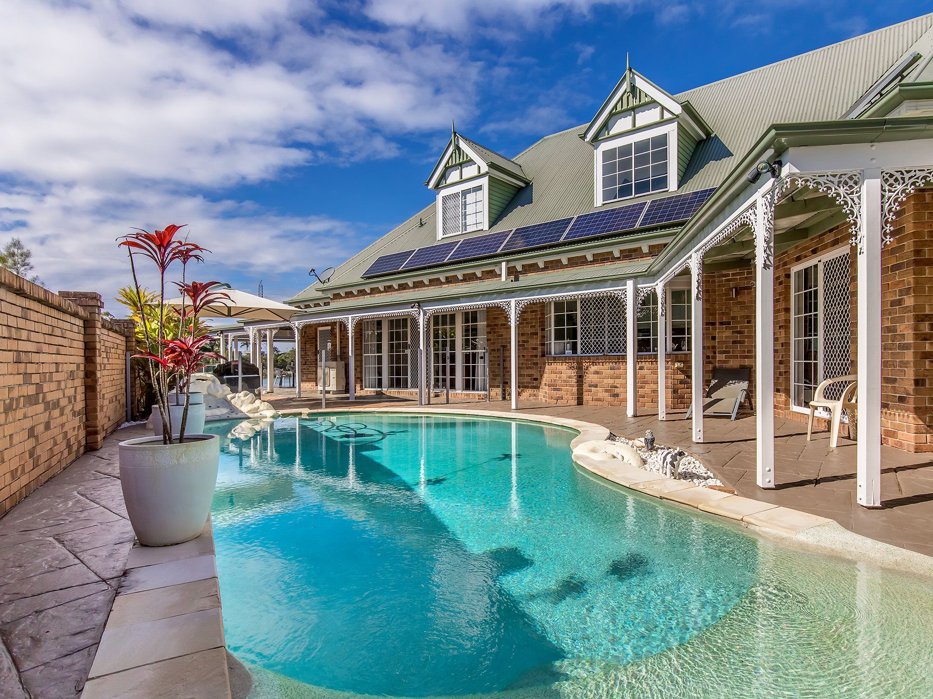 A stunning federation style waterfront property and proud of it. If you have ever owned this style of home you will know and appreciate the grandeur and many advantages it has over your typical Gold Coast home. With high ceilings and wide verandas enabling cool breezes and the luxury of keeping your windows open even when it rains, you will truly appreciate the classic elegance this property has combined with contemporary luxuries, creating an exceptional living experience.